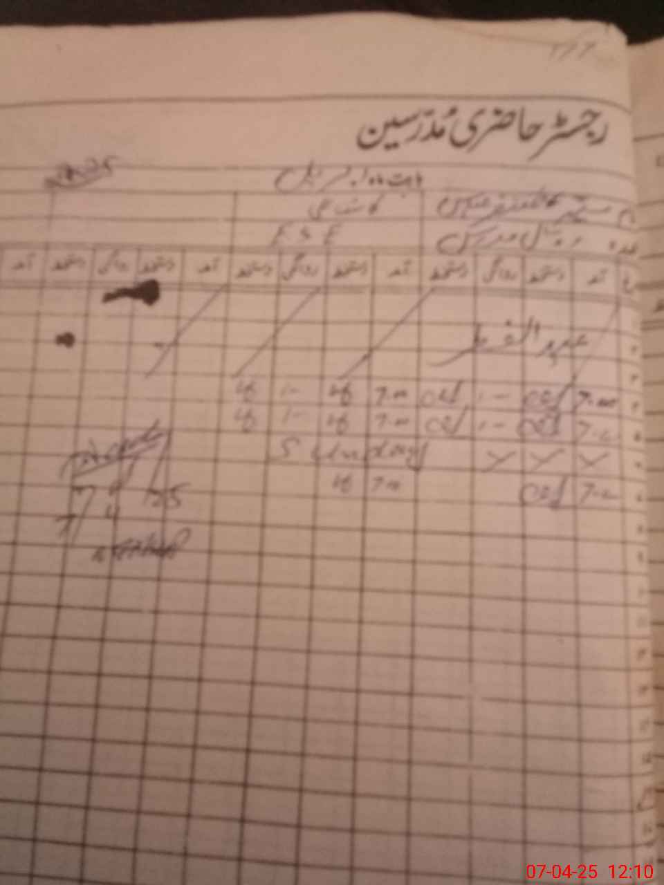 | CNIC | Full Name | Designation | R/C | Absence During Last Calender Month |