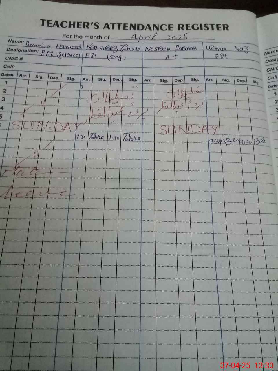 | 35**** | Ai**** Sh**** | PST | Regular | 0 | 0 | 0 | 0 | 0 | 0 | 0 | 0 | 0 | Exam Duty |