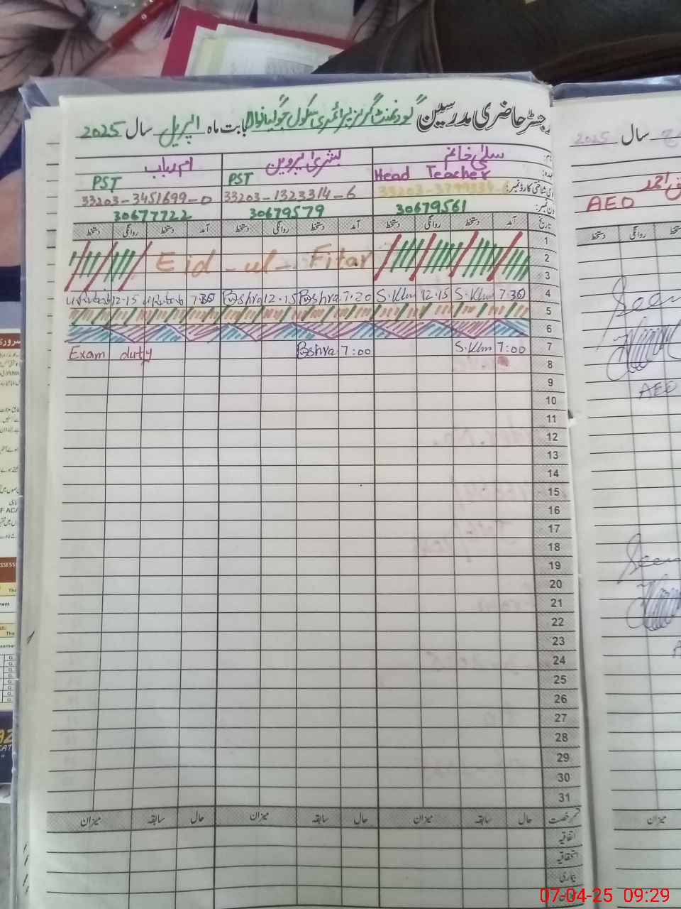| 33**** | Um**** Ru**** | PST | Regular | 0 | 0 | 0 | 0 | 0 | 0 | 0 | 0 | 0 | Exam Duty |