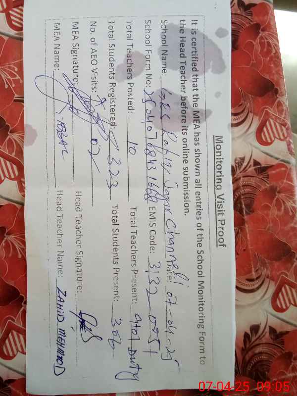 | Certified that this School was Inspected by the Undersigned MEA/DMO Today and the Information Stated Above is as Per Record. | |||||