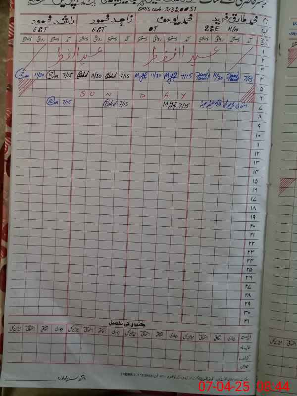| 31**** | Mu**** Ta**** Fa**** | 6 | 2 | 0 | 0 | 0 | 0 | 0 | 0 | 0 | 0 | 0 | Exam Duty |
