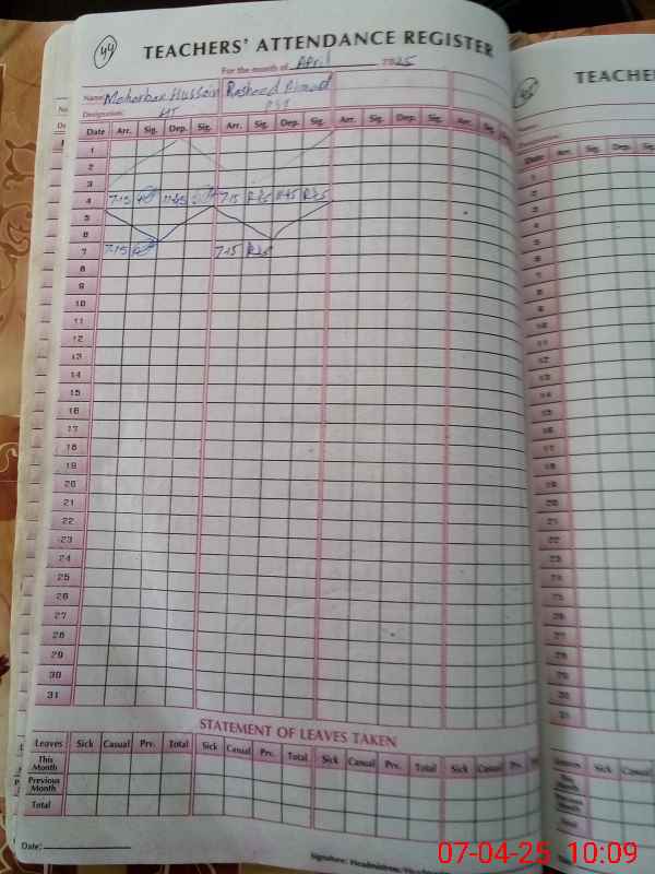 | Name: ME**** HU**** Designation: (School Headmaster's/Headmistress's) PST Phone/Cell Number: 03**** |