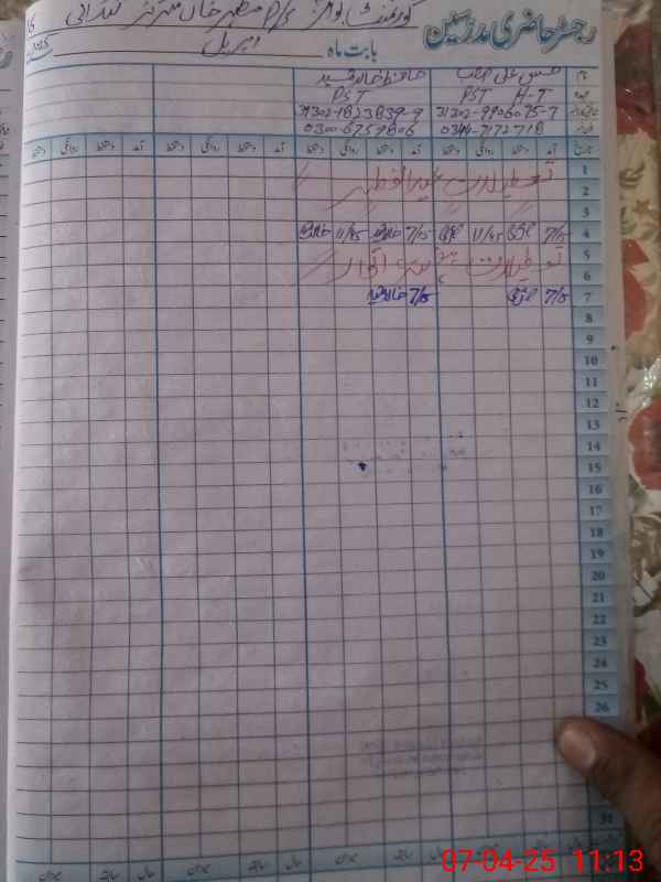 | Name: HA**** AL**** Designation: (School Headmaster's/Headmistress's) PST Phone/Cell Number: 03**** |