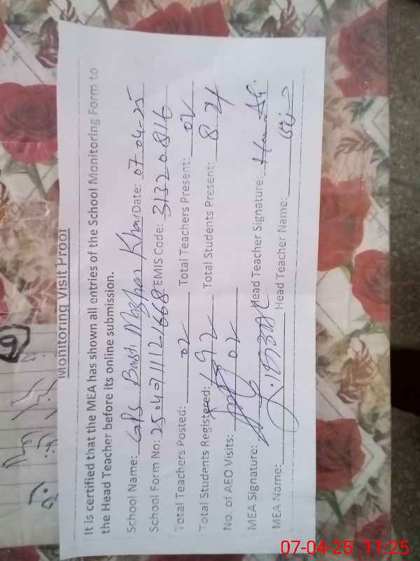 | EMIS Code: 31320816 | Name of School: GPS BASTI MAZHAR KHAN | |||