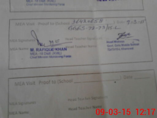 | Certified that this School was Inspected by the Undersigned MEA/DMO Today and the Information Stated Above is as Per Record. | |||||
