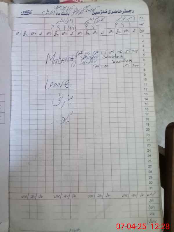 | Leave | Duty | Absent | Maternity | Medical | Ex- Pak |