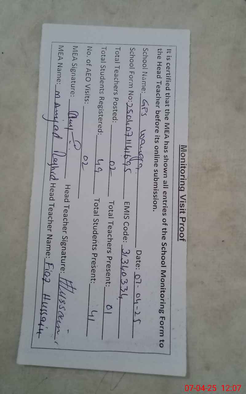 | EMIS Code: 31340334 | Name of School: GPS WAGA | |||