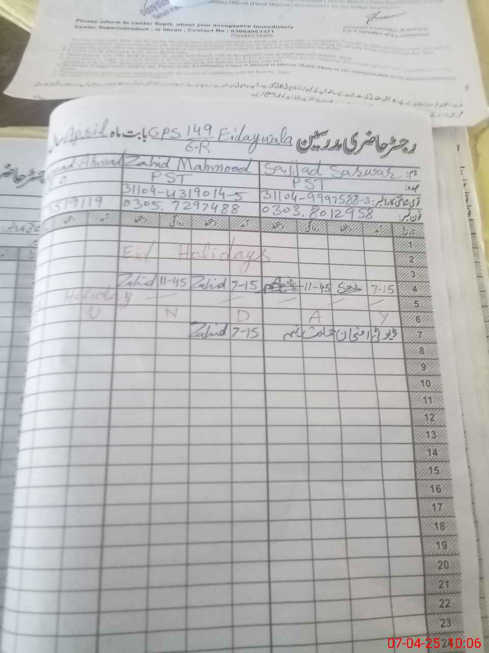 | 31**** | Sa**** Sa**** | PST | Regular | 0 | 0 | 0 | 0 | 0 | 0 | 0 | 0 | 0 | Exam Duty |