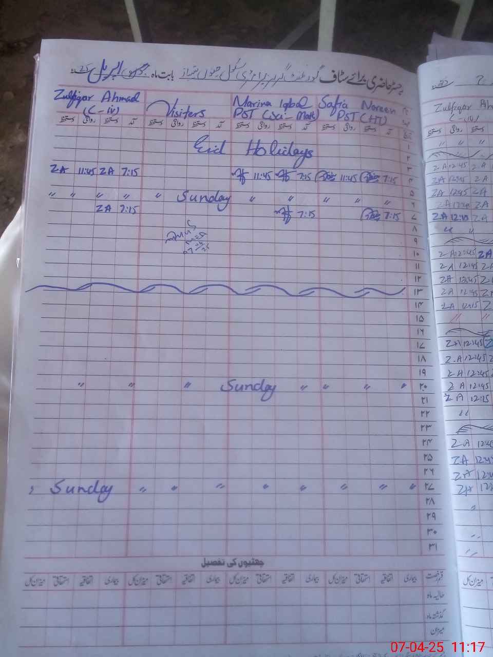 | CNIC | Full Name | Designation | R/C | Absence During Last Calender Month |