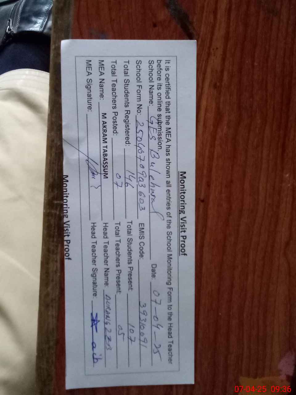 | EMIS Code: 39310091 | Name of School: GES BULEHWAL | |||