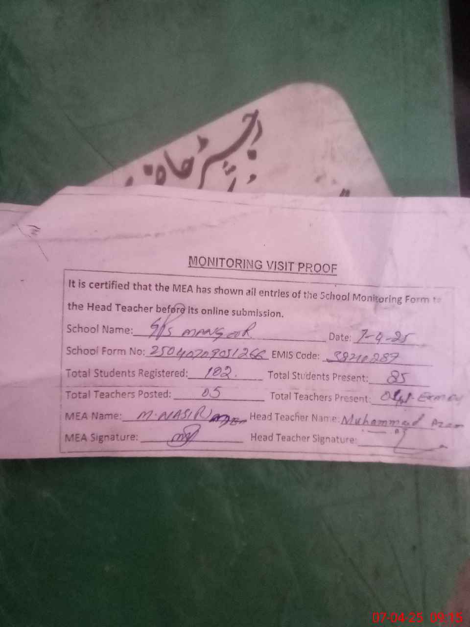 | EMIS Code: 38210287 | Name of School: GPS MANGOOR | |||