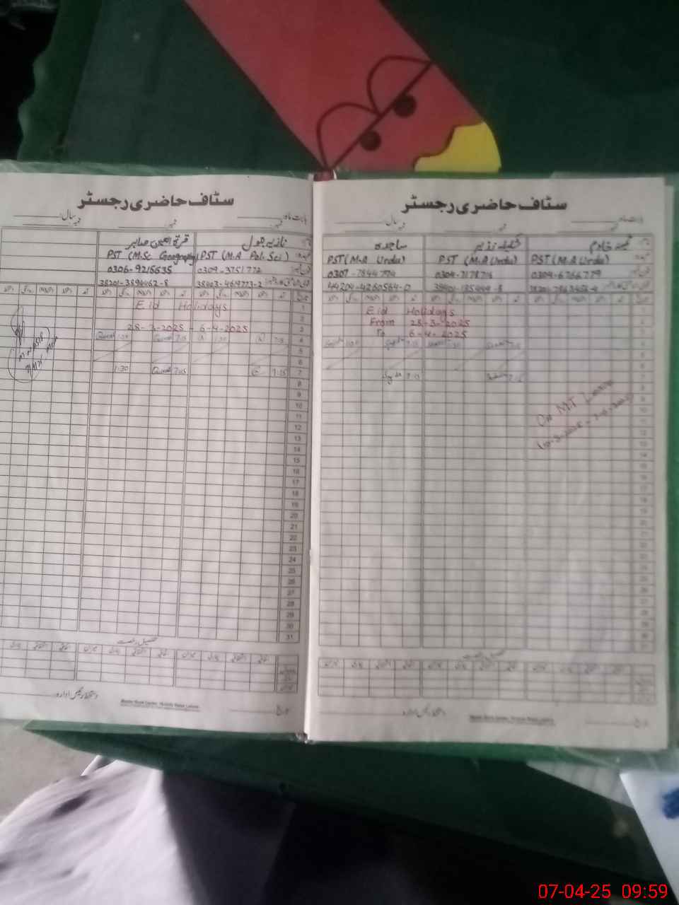 | Name: Sh**** Na**** Designation: (School Headmaster's/Headmistress's) PST Phone/Cell Number: 03**** |
