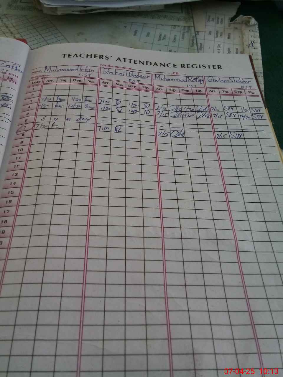 | CNIC | Full Name | Designation | R/C | Absence During Last Calender Month |