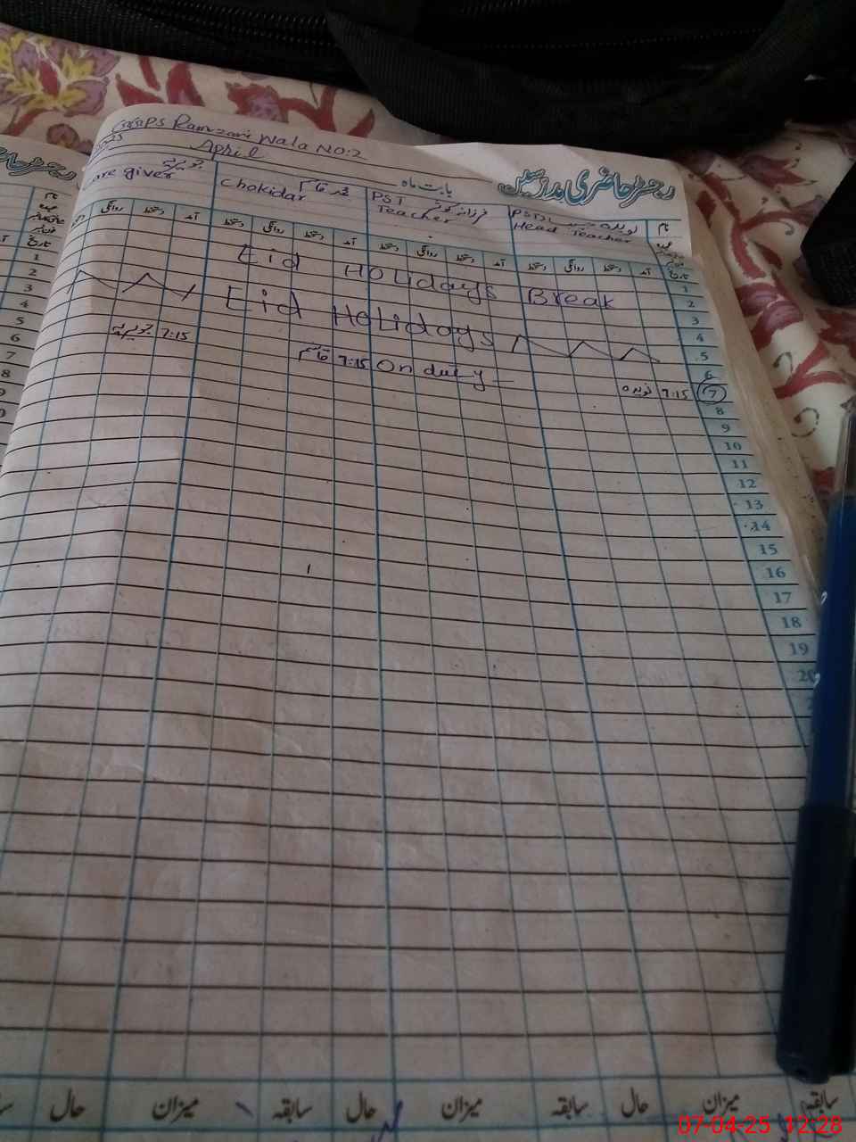 | 36**** | Fa**** Ka**** | 1 | 1 | 0 | 0 | 0 | 0 | 0 | 0 | 0 | 0 | 0 | Exam Duty |