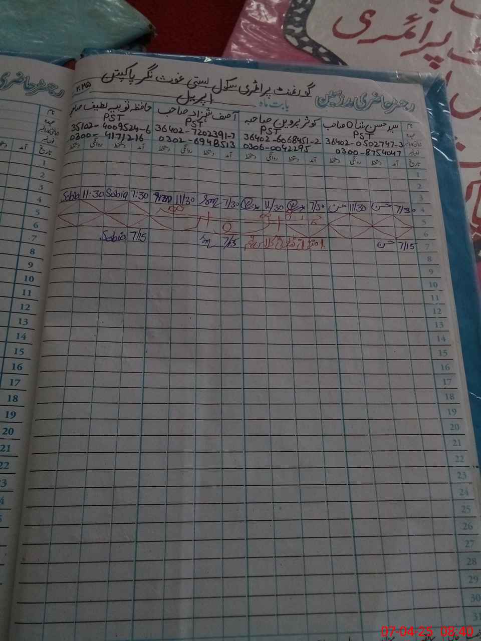 | Name: SY**** HA**** SH**** Designation: (School Headmaster's/Headmistress's) PST Phone/Cell Number: 03**** |