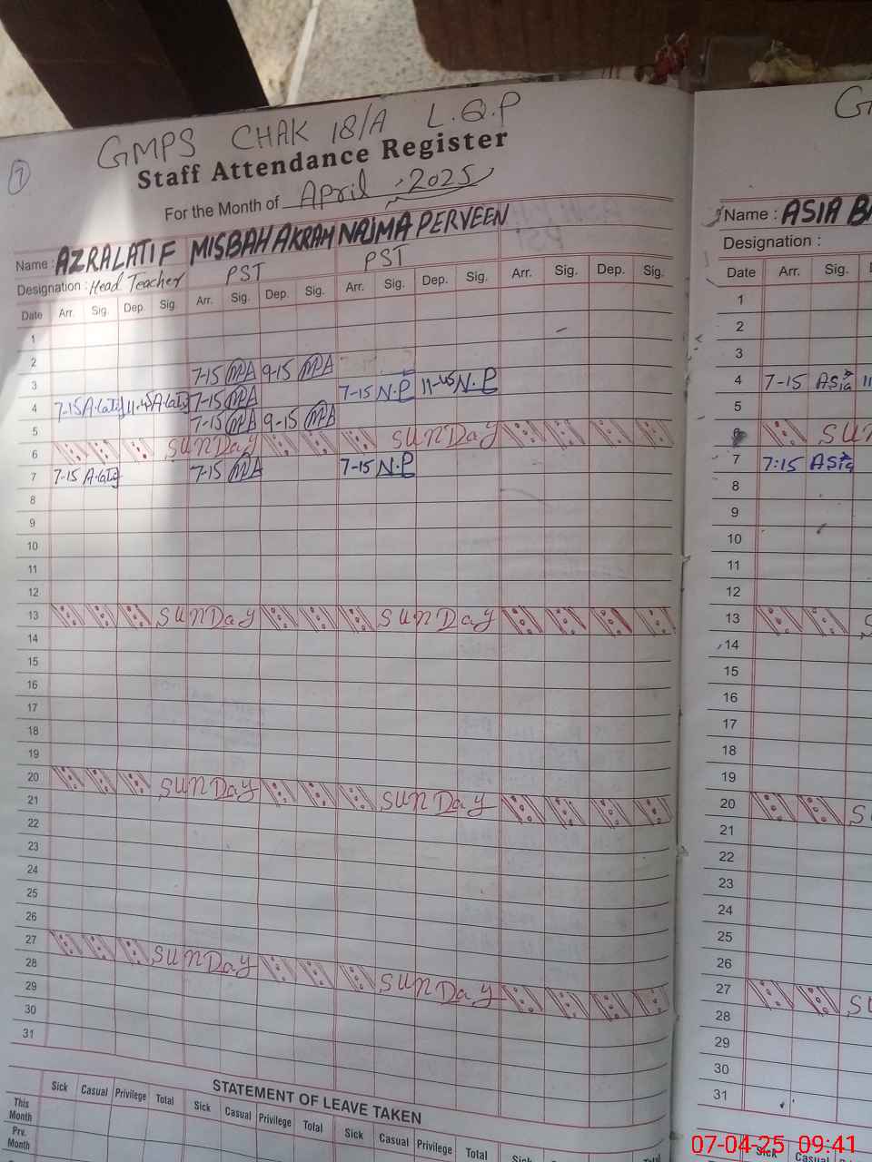 | Name: AZ**** LA**** Designation: (School Headmaster's/Headmistress's) PST/PTC/JV Phone/Cell Number: 03**** |