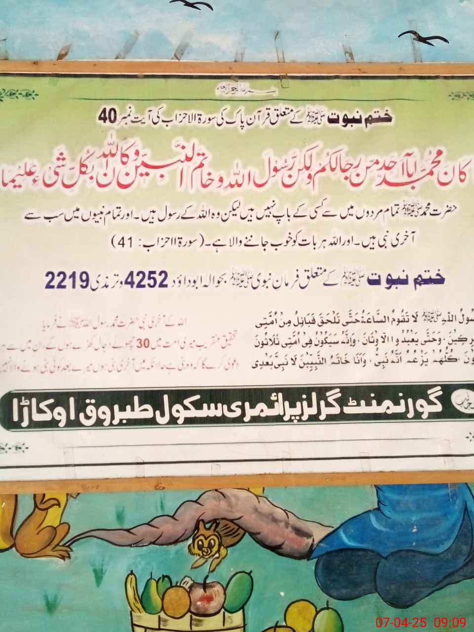 | District: OKARA | Tehsil: OKARA | Markaz: TABROOQ - FEMALE | Level: Primary | |
