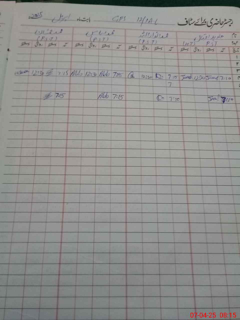 | CNIC | Full Name | Designation | R/C | Absence During Last Calender Month |