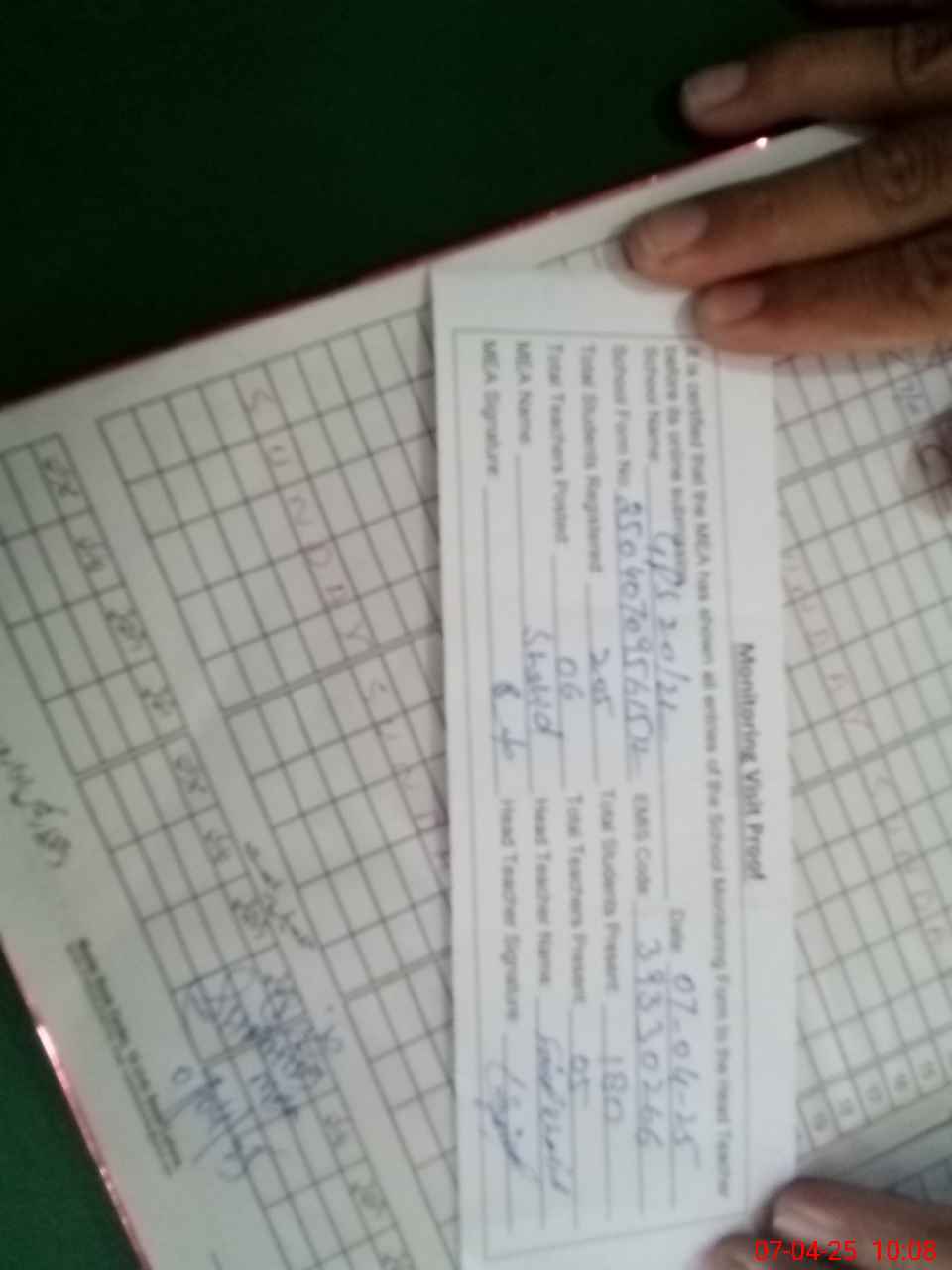 | Attendance Register | Head Teacher | MEA with School | Visit Proof |