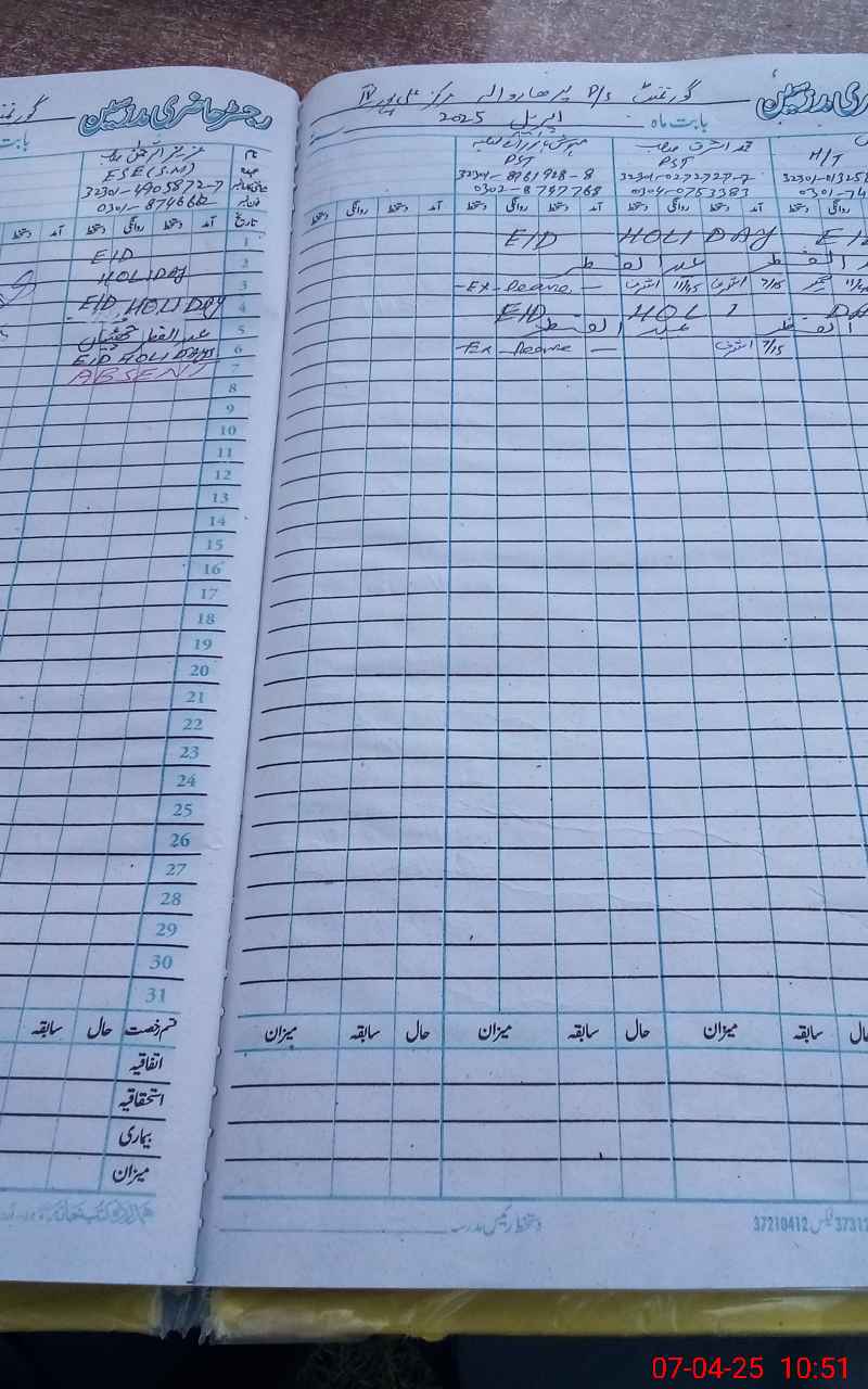 | Name: SH**** Iq**** Designation: (School Headmaster's/Headmistress's) PST Phone/Cell Number: 03**** |