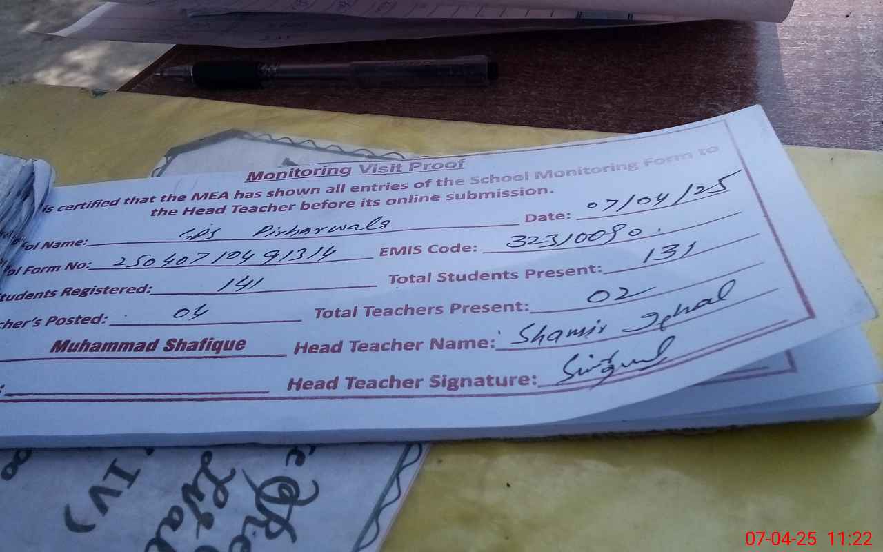 | Attendance Register | Head Teacher | MEA with School | Visit Proof |