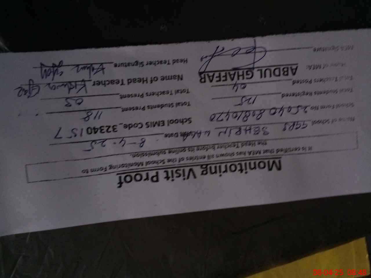 | Certified that this School was Inspected by the Undersigned MEA/DMO Today and the Information Stated Above is as Per Record. | |||||