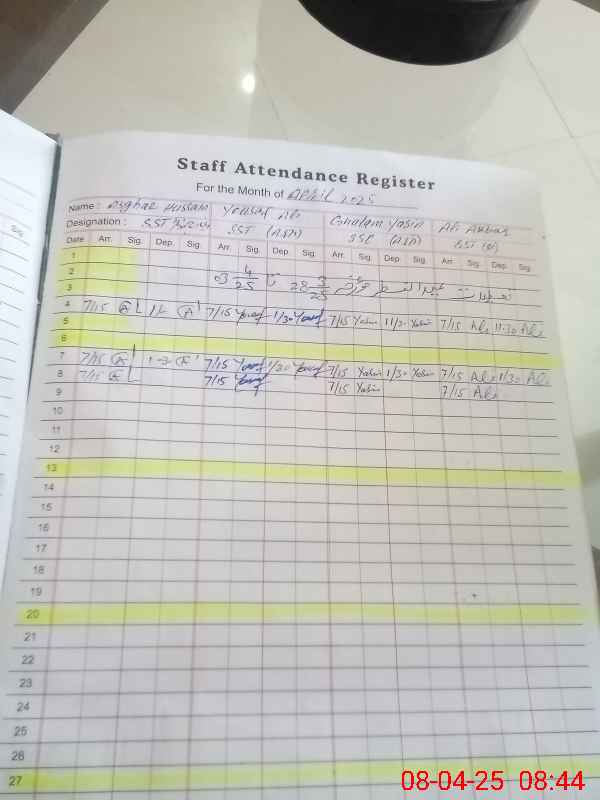 | Name: As**** Hu**** Designation: (School Headmaster's/Headmistress's) Inc . Head Master Phone/Cell Number: 03**** |