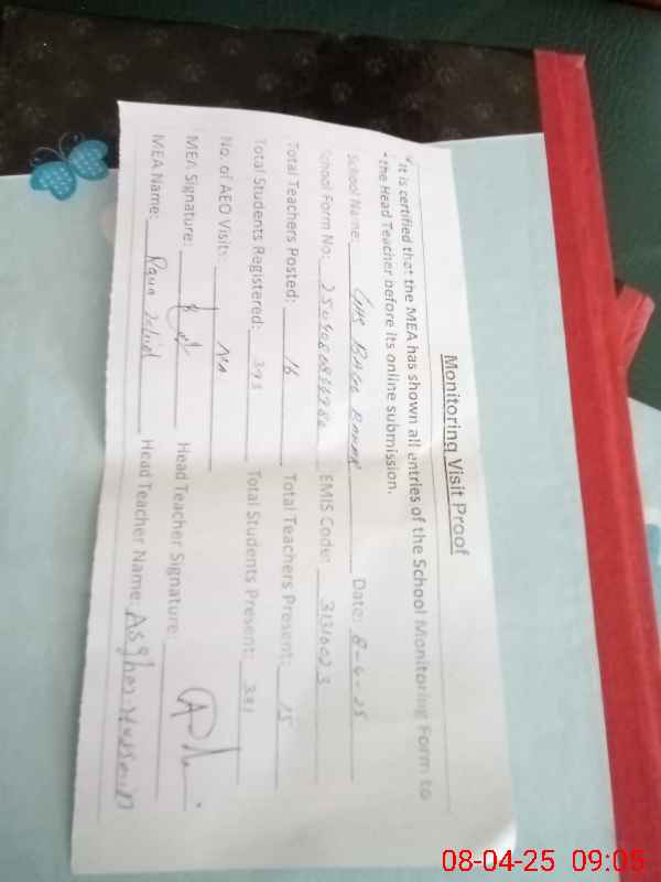 | Attendance Register | Head Teacher | MEA with School | Visit Proof |