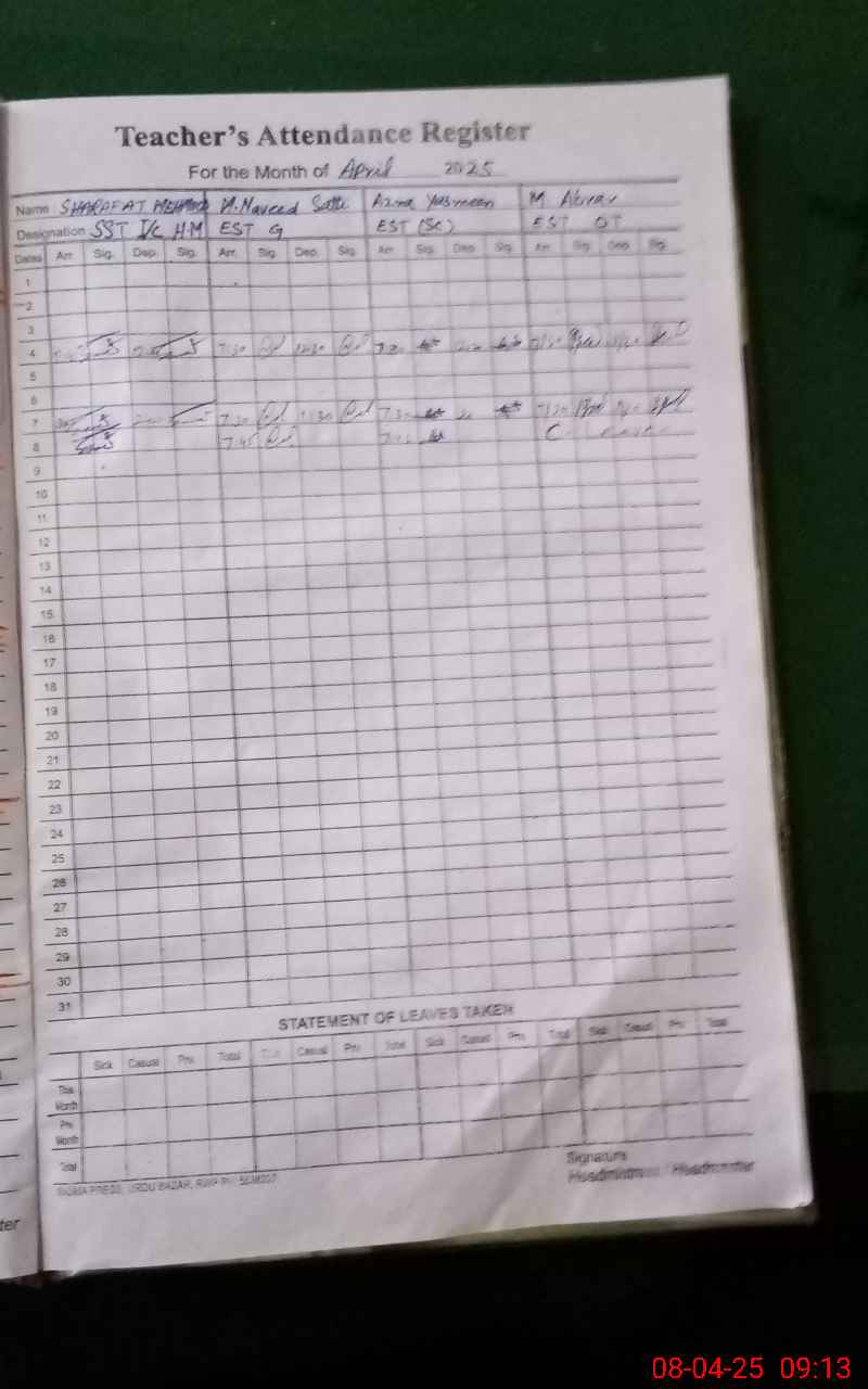 | Name: Sh**** Me**** Designation: (School Headmaster's/Headmistress's) SST Phone/Cell Number: 03**** |