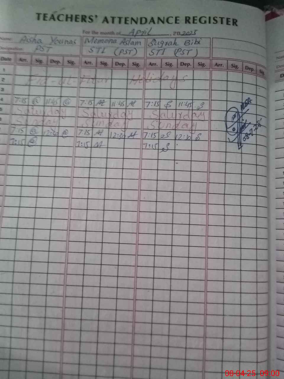 | Monitoring Date: 08-04-2025 | Start Time: 08-04-2025 08:57 AM | End Time: 08-04-2025 09:28 AM | Name of MEA: MU**** AH**** | |