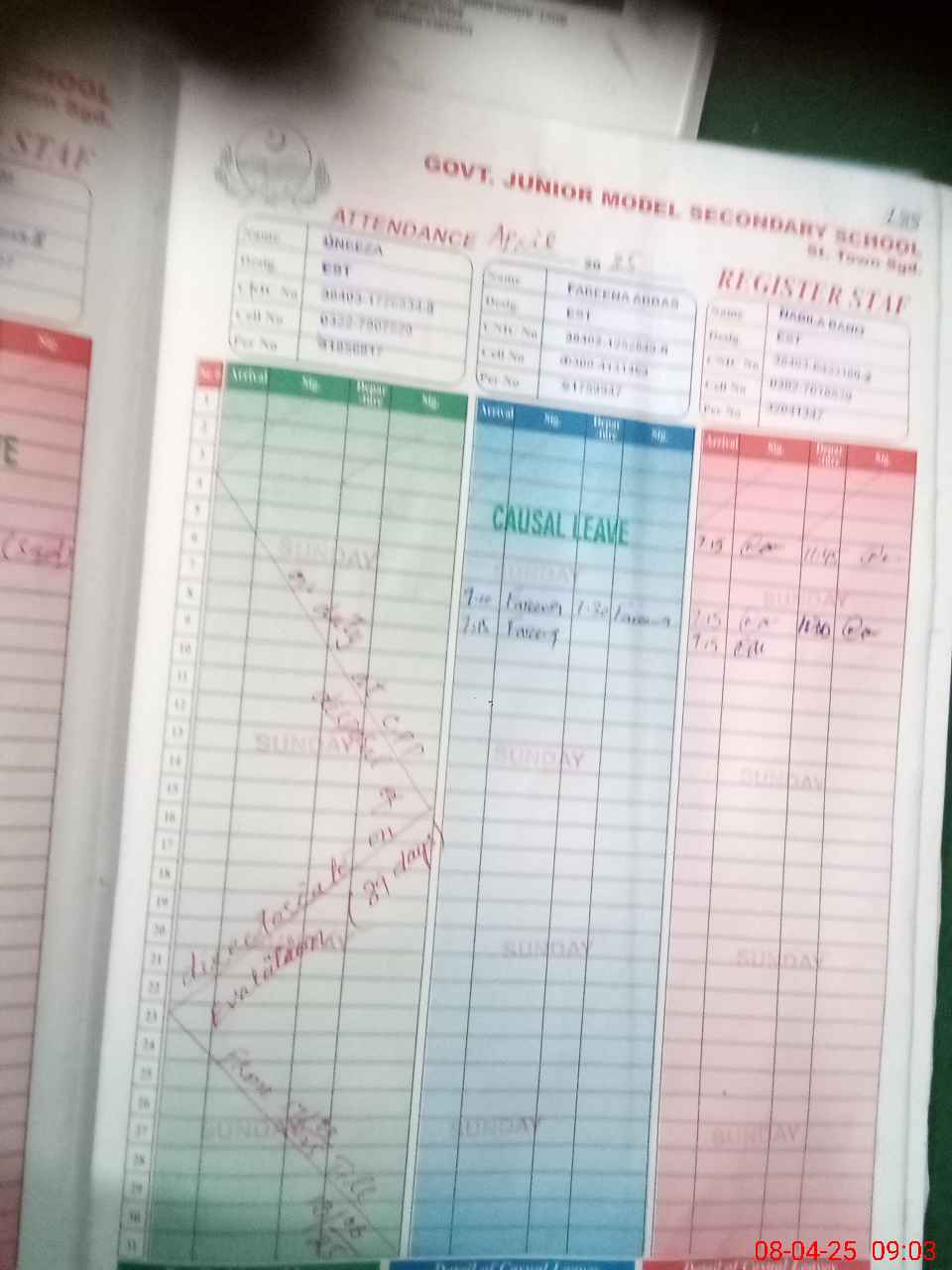 | 38**** | Is**** Bi**** | Regular | 0 | 29 | 0 | 0 | 0 | 0 | 0 | 0 | 0 | Exam Duty | |