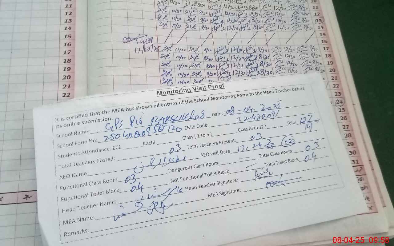 | EMIS Code: 32430091 | Name of School: GPS PIR BAKHSH KHAS | |||