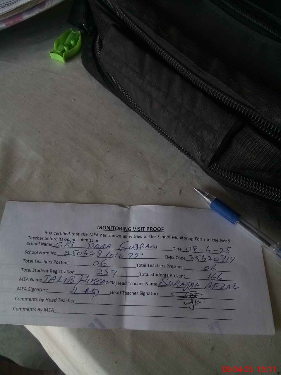 | EMIS Code: 35420719 | Name of School: GPS DERA GUJRAN | |||