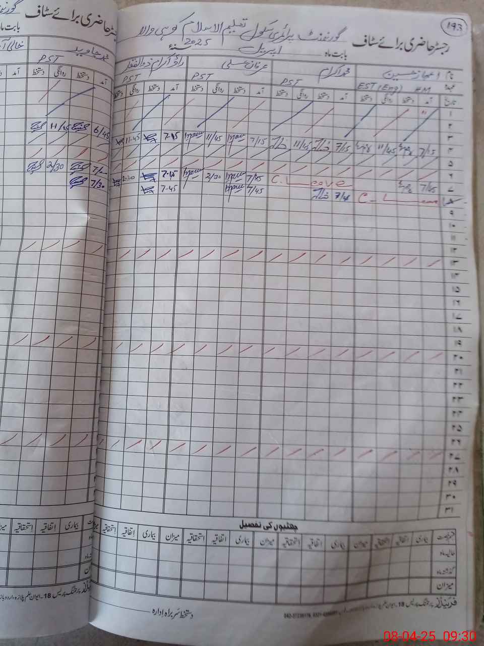 | CNIC | Full Name | Designation | R/C | Absence During Last Calender Month |