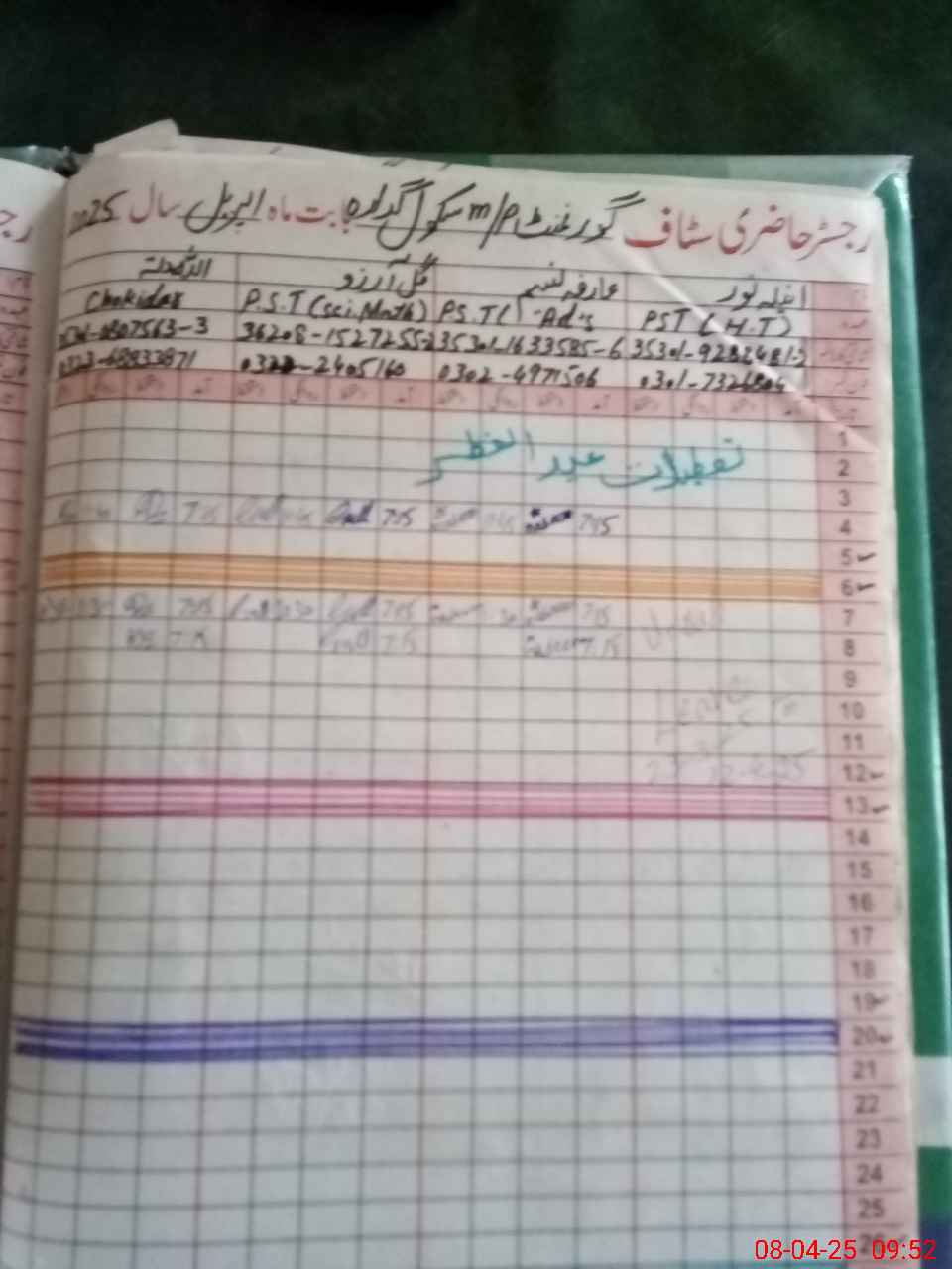 | CNIC | Full Name | Designation | R/C | Absence During Last Calender Month |