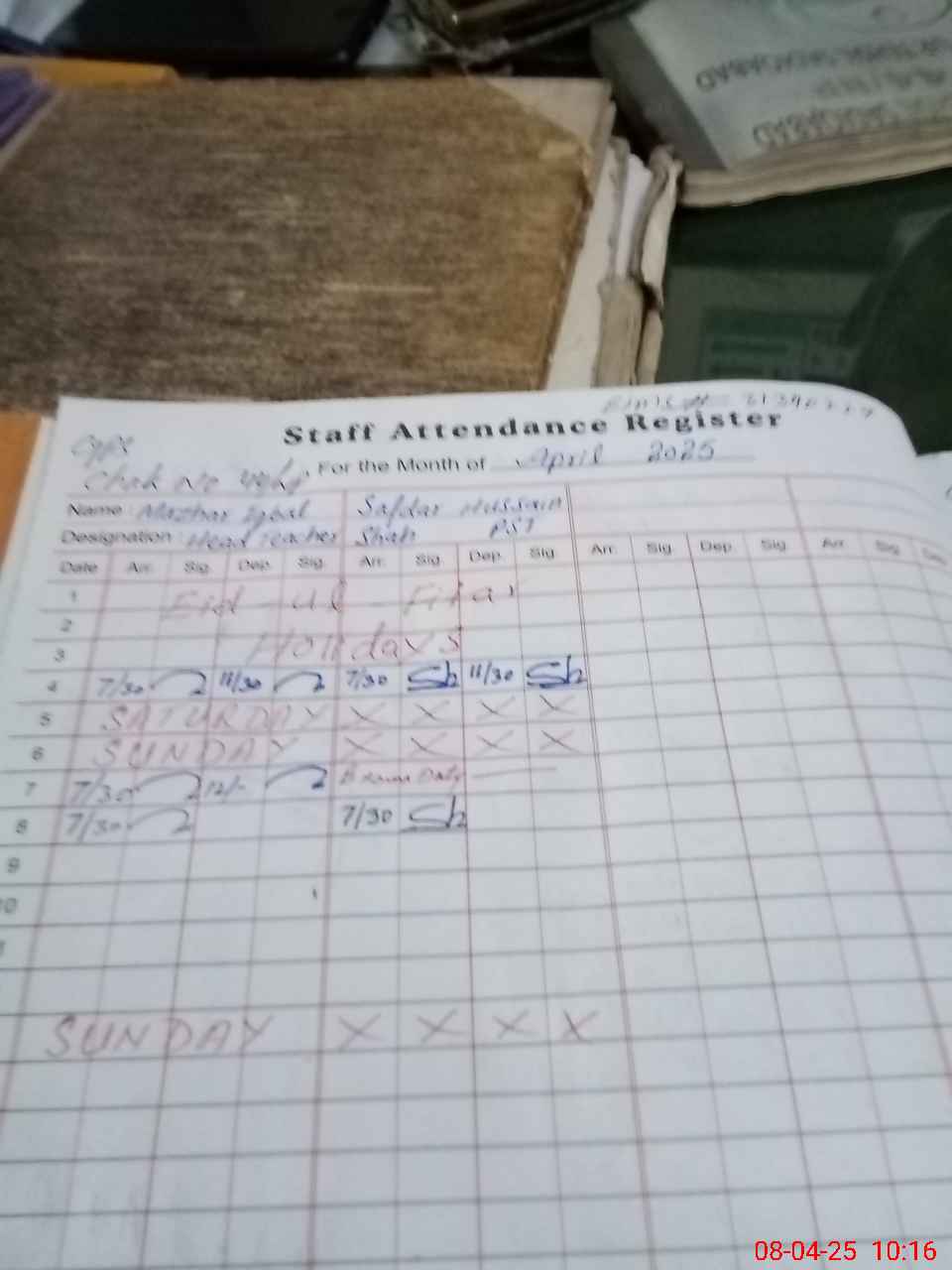 | Name: MA**** IQ**** Designation: (School Headmaster's/Headmistress's) PST Phone/Cell Number: 03**** |