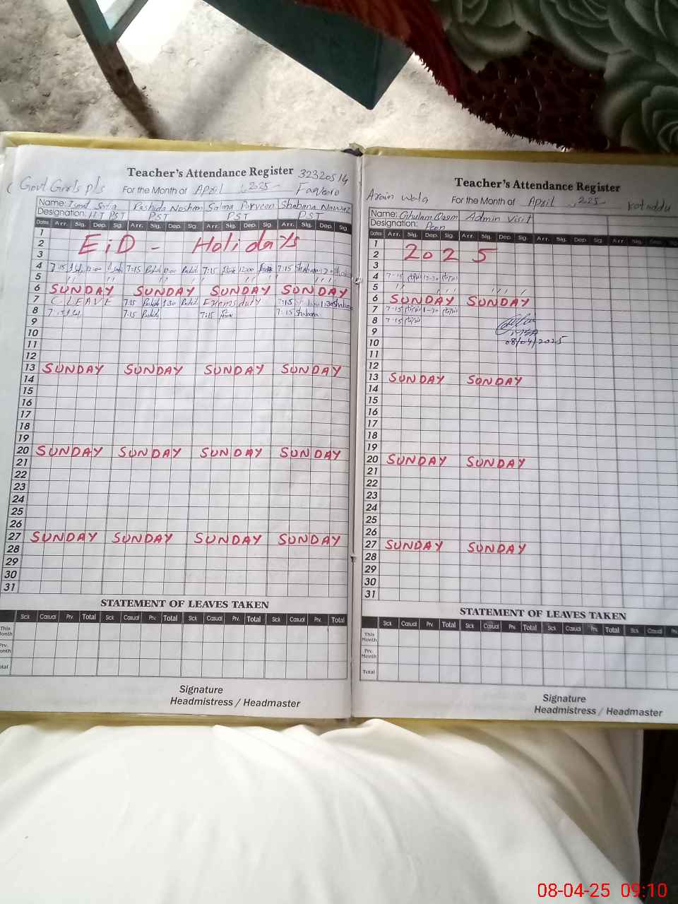 | Name: As**** Sa**** Designation: (School Headmaster's/Headmistress's) PST Phone/Cell Number: 03**** |
