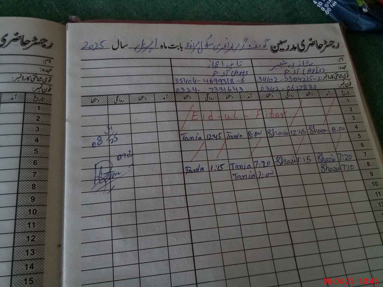 | Name: SH**** Designation: (School Headmaster's/Headmistress's) PST Phone/Cell Number: 03**** |