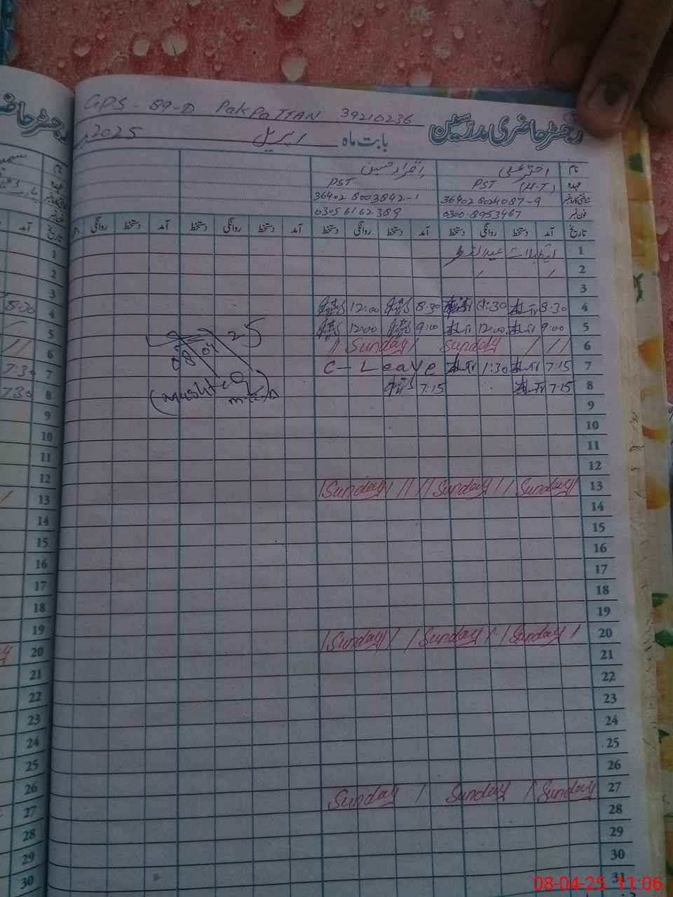 | Name: AK**** AL**** Designation: (School Headmaster's/Headmistress's) PST Phone/Cell Number: 03**** |