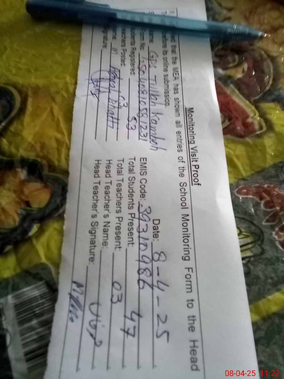 | EMIS Code: 39310986 | Name of School: GPS TULLAH KAMBOH | |||