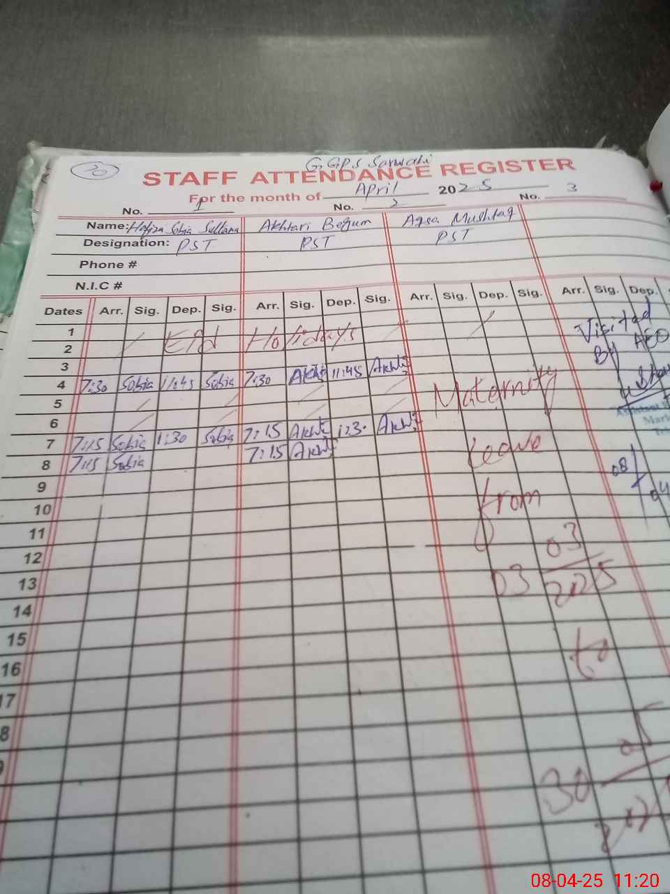 | Name: Ha**** So**** Su**** Designation: (School Headmaster's/Headmistress's) PST Phone/Cell Number: 03**** |