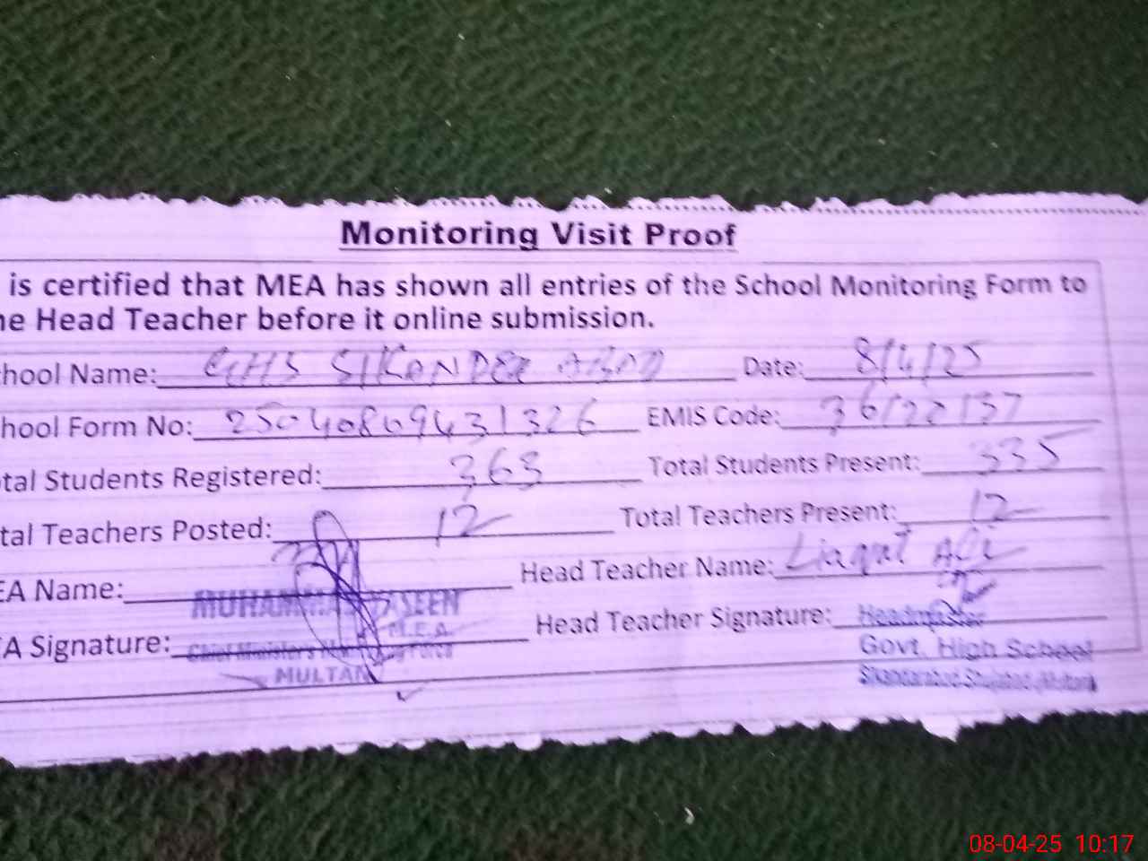 | EMIS Code: 36120137 | Name of School: GHS SIKANDER ABAD SHUJABAD | |||