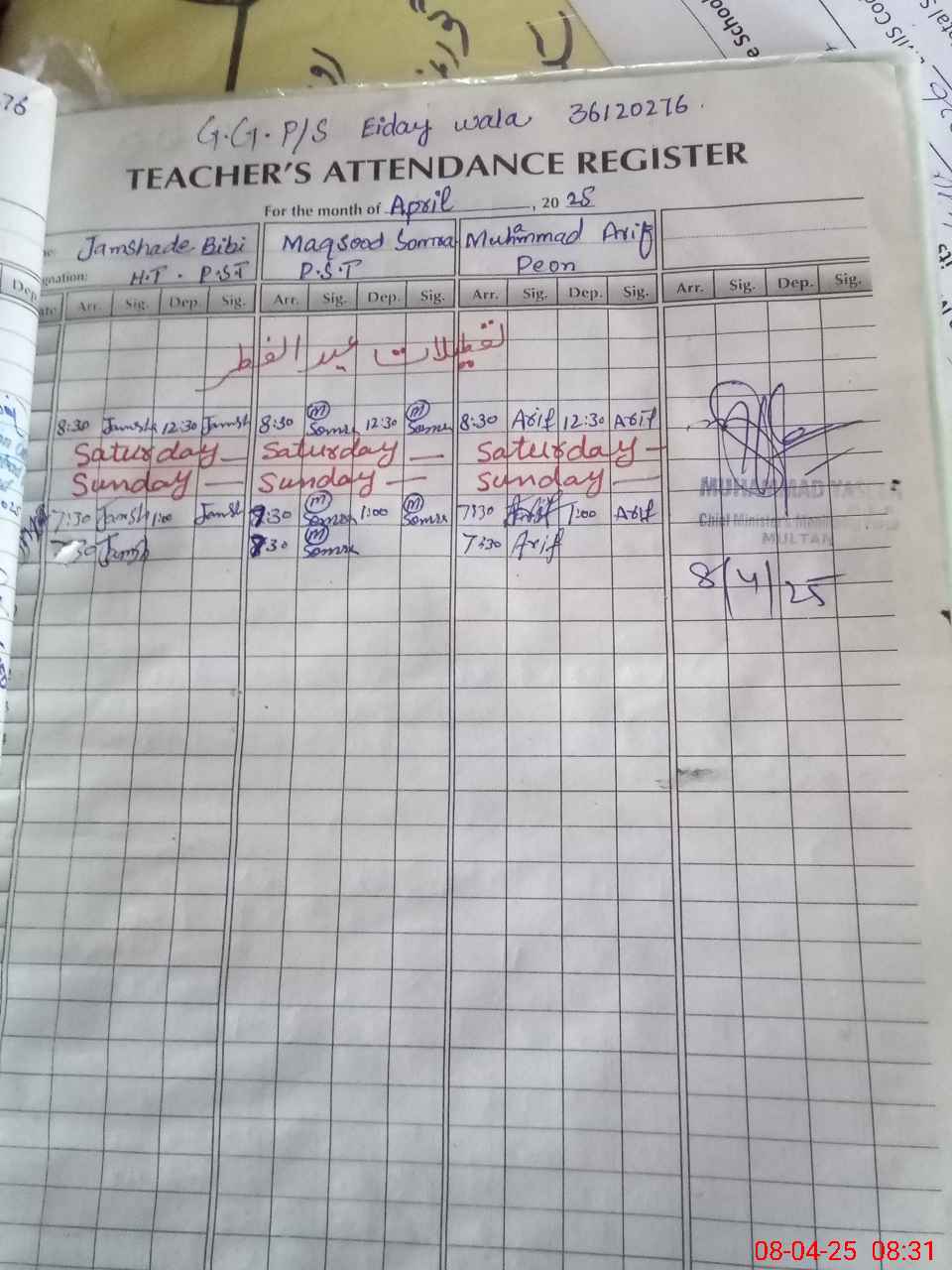| EMIS Code: 36120276 | Name of School: GGPS EIDAY WALA MUZA SIKANDAR ABAD | |||