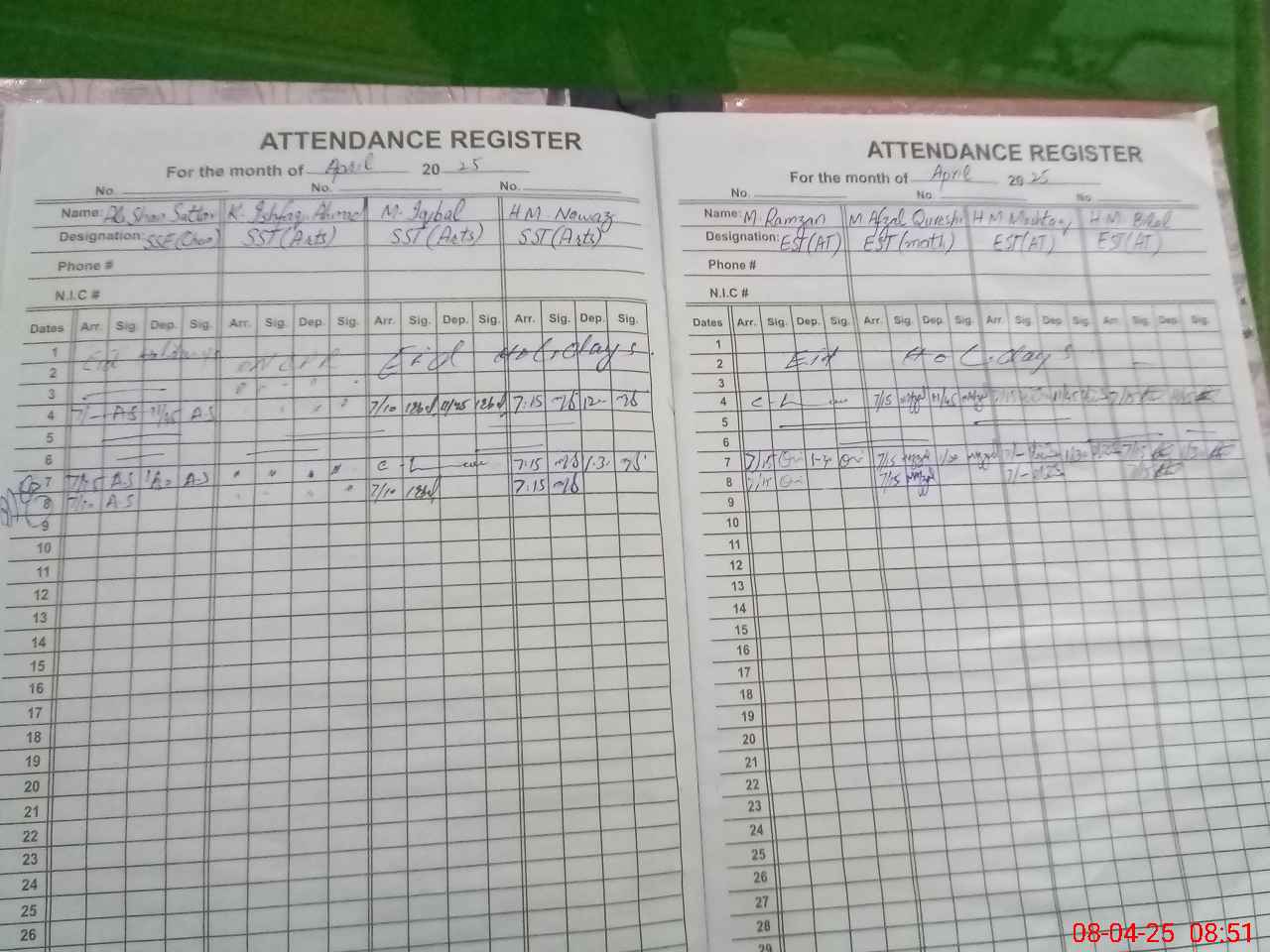 | CNIC | Full Name | Designation | R/C | Absence During Last Calender Month |
