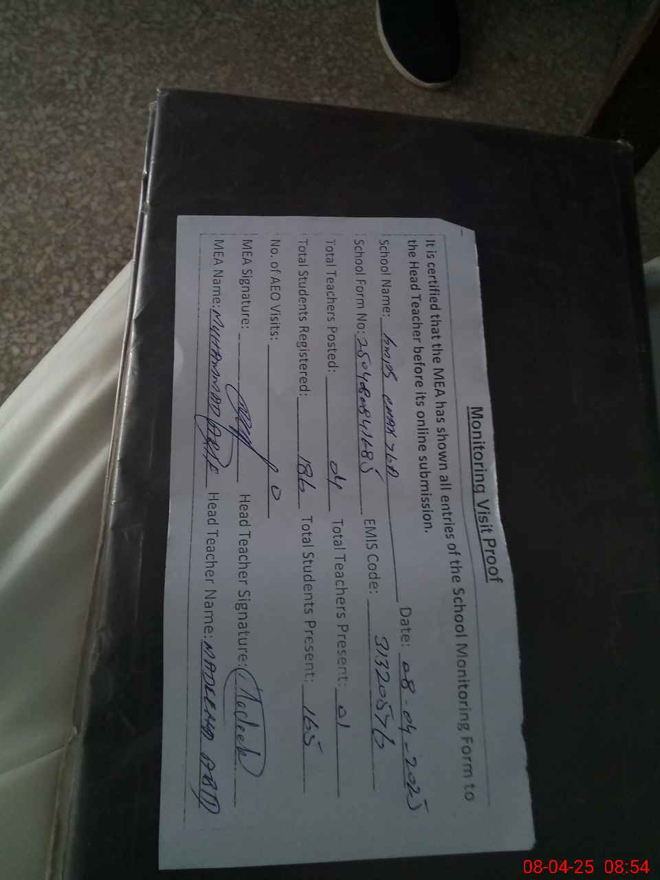 | Certified that this School was Inspected by the Undersigned MEA/DMO Today and the Information Stated Above is as Per Record. | |||||