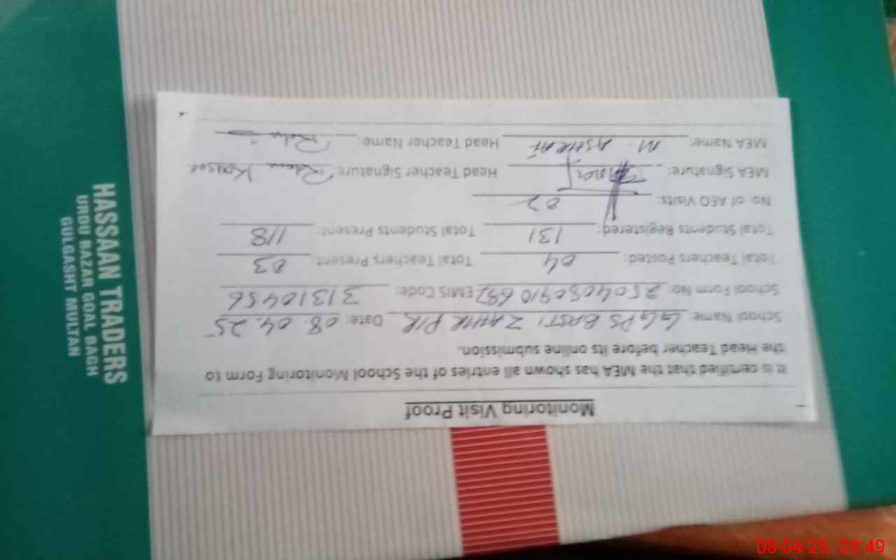 | EMIS Code: 31310456 | Name of School: GGPS BASTI ZAHIR PIR | |||