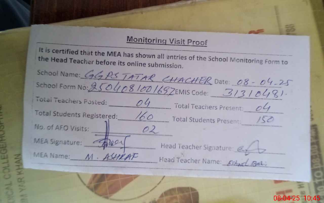 | EMIS Code: 31310481 | Name of School: GGPS TATAR CHACHAR | |||