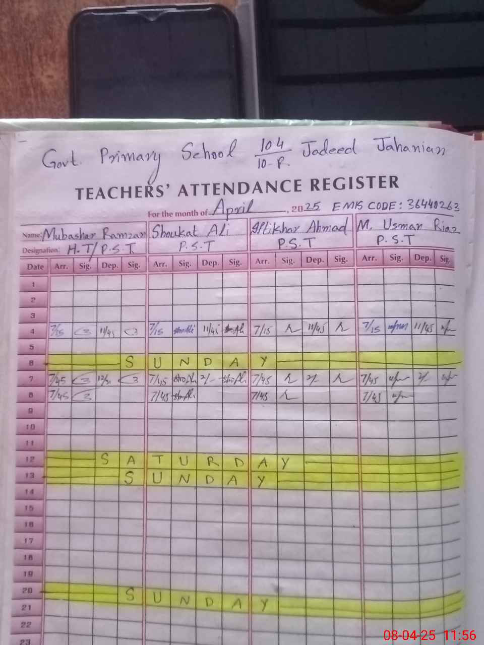 | Name: MU**** RA**** Designation: (School Headmaster's/Headmistress's) PST Phone/Cell Number: 03**** |