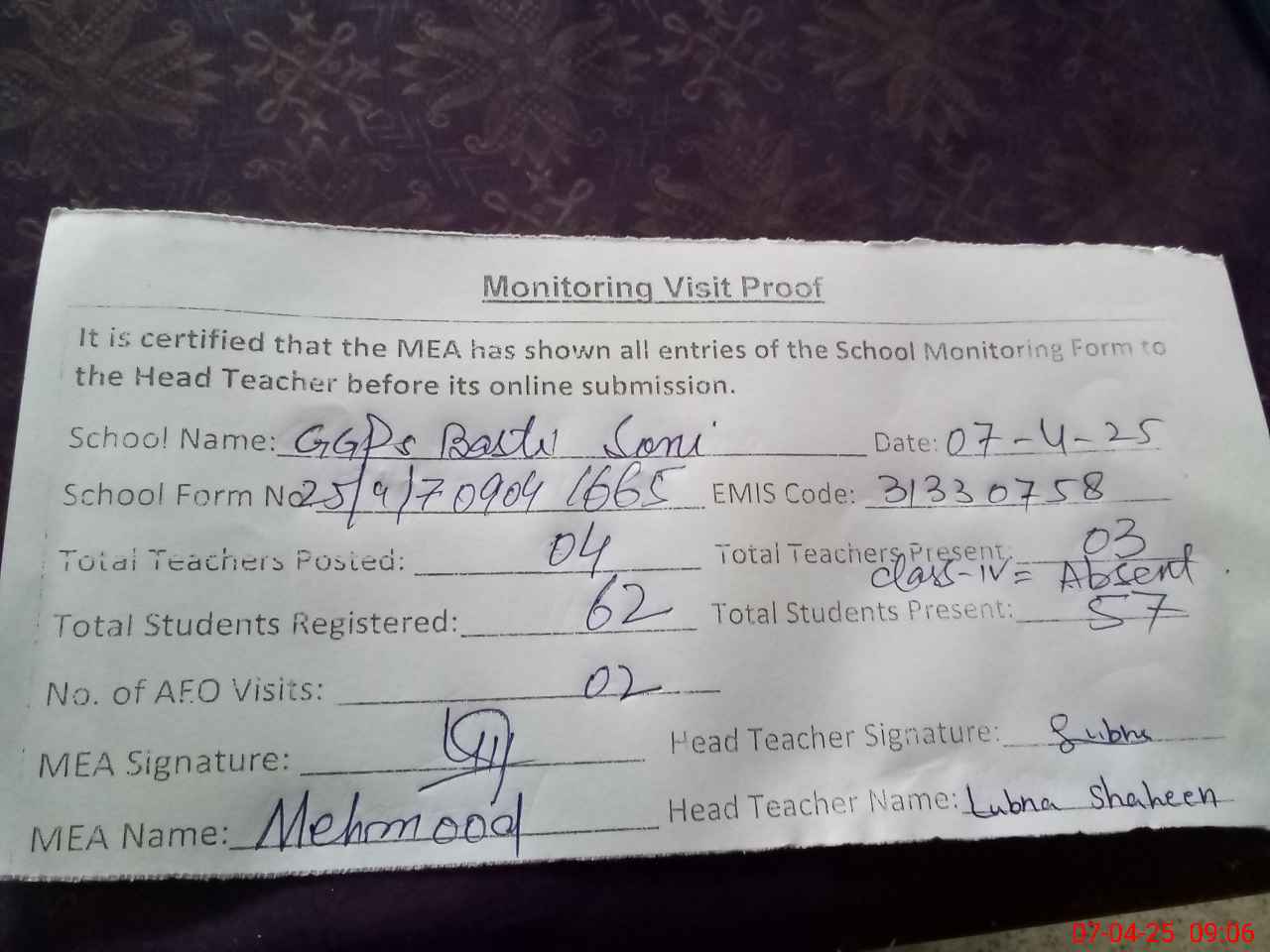 | EMIS Code: 31330758 | Name of School: GGPS BASTI SONI | |||