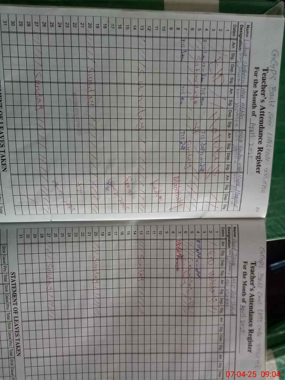 | 31**** | Ab**** Ja**** | CHOKIDAAR | Regular | 1 | 0 | 0 | 0 | 0 | 0 | 0 | 0 | 1 | Absent (Un-Authorized) |